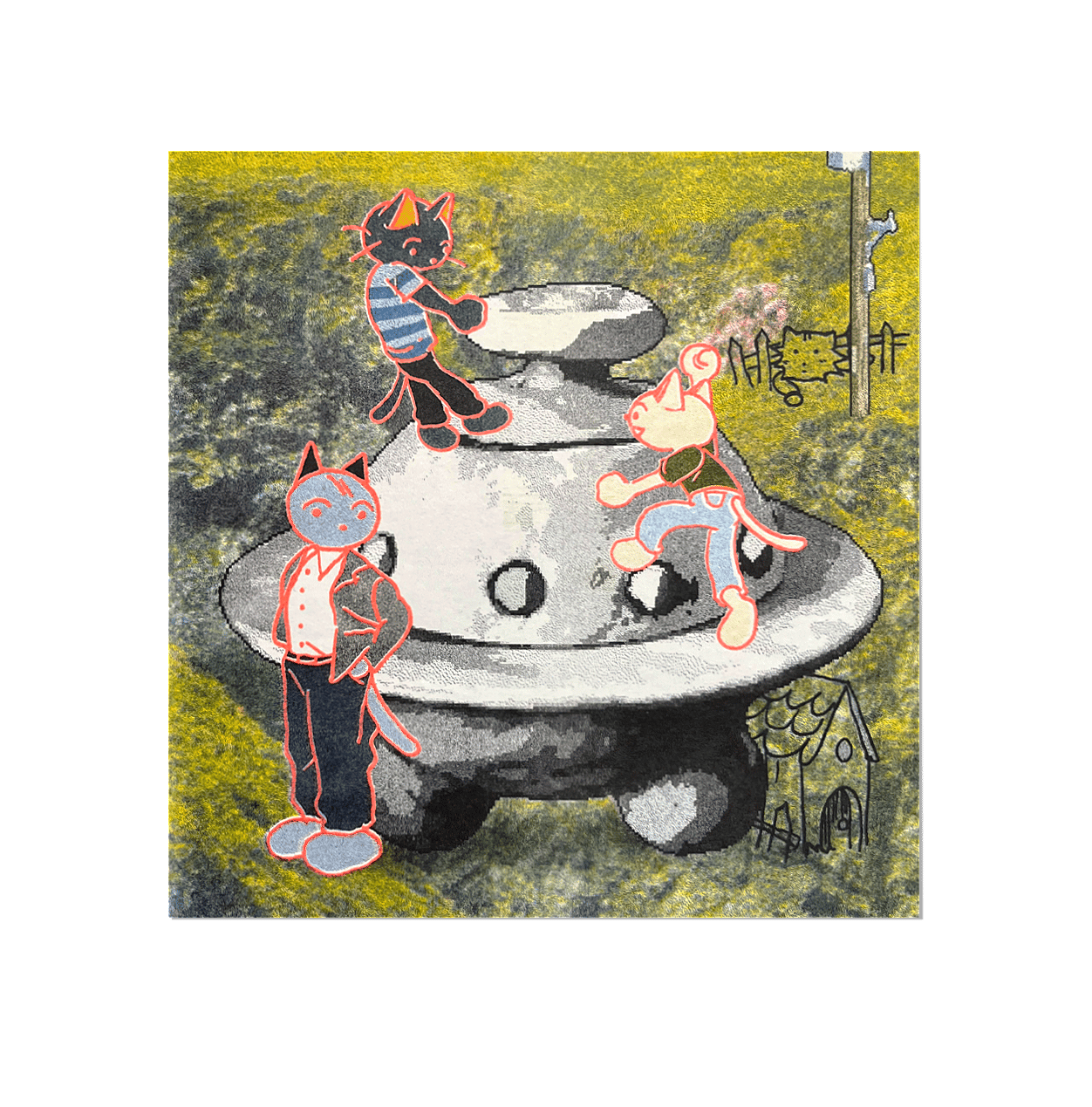 ꩜ cream paper with black, blue, yellow, and florescent orange riso ink